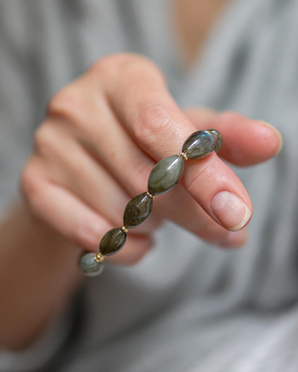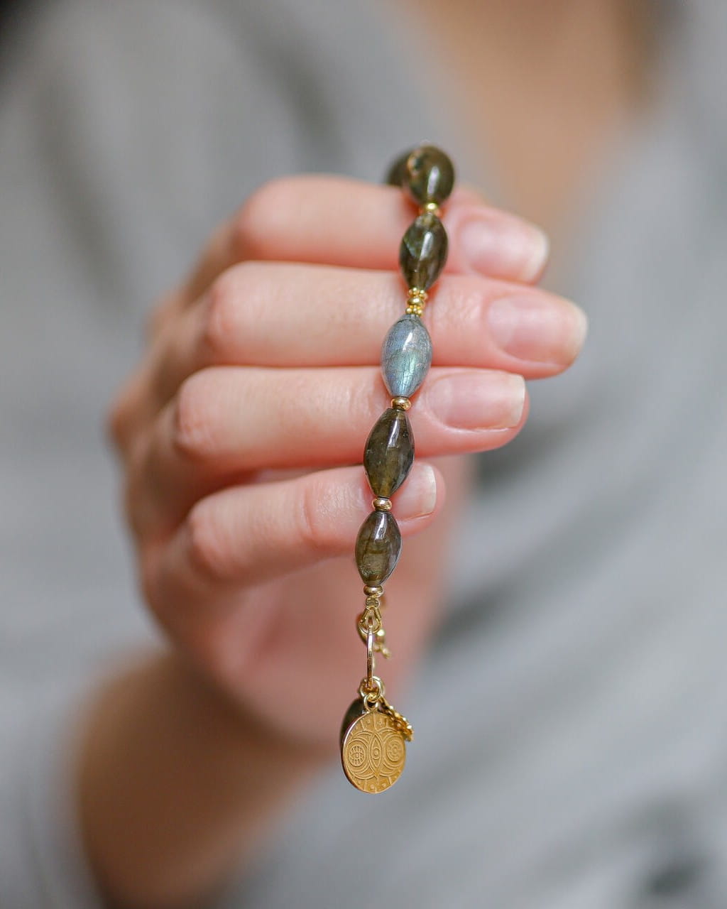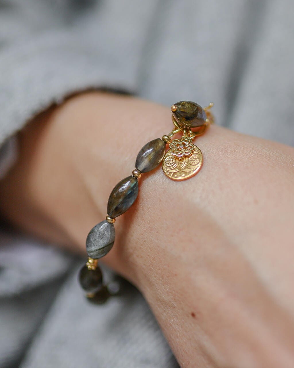 Ta bransoletka z labradorytu powstała z myślą o kobietach, które niosą w sobie świat intuicji – cichej, pewnej i nieprzemijającej.